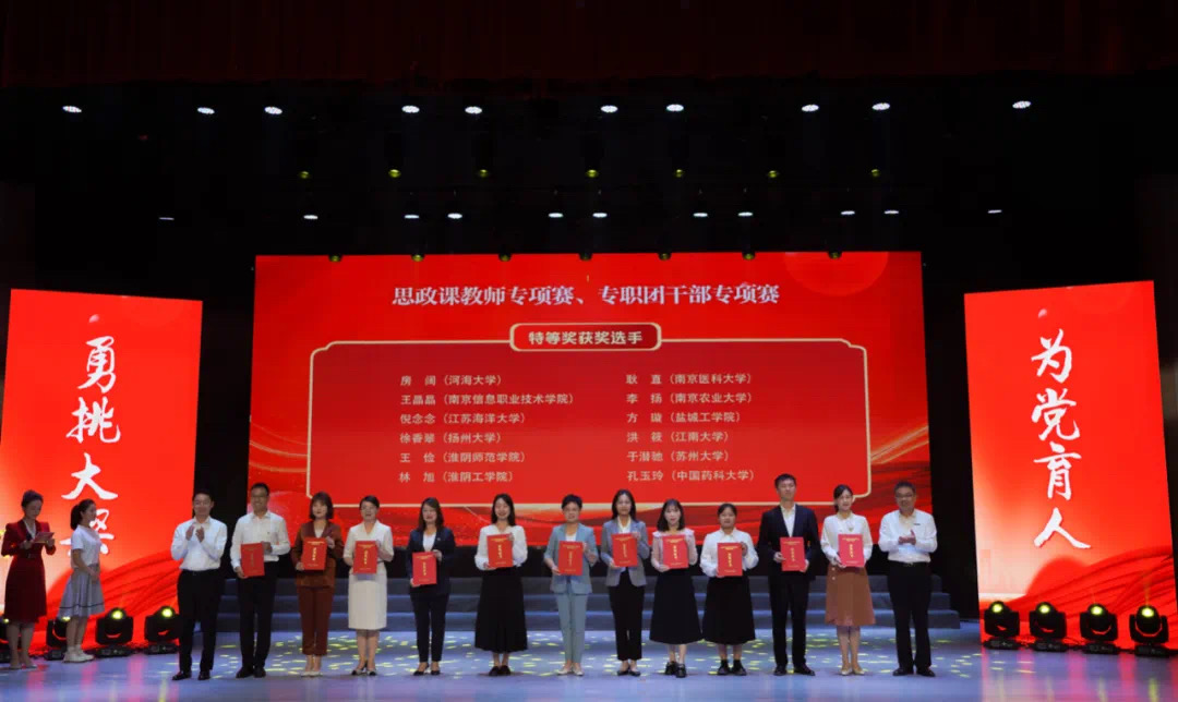 9月28日,江苏高校百校万名团干部思政技能大比武系列比赛颁奖仪式在宿迁学院举行,我校共获得特等奖4项,一等奖1项,二等奖6项,三等奖1项,省赛特等奖数、获奖总数均列全省第一,创历史最好成绩。
