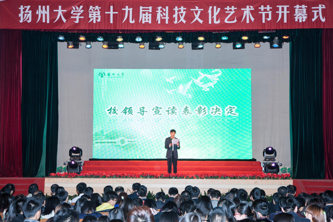 5月4日晚,学校在文汇路校区大礼堂举行第19届科技文化艺术节开幕式暨“五四”表彰大会。校党委副书记、副校长芮鸿岩讲话,副校长胡效亚为校“五四红旗团委”颁奖,副校长叶柏森宣读表彰决定。