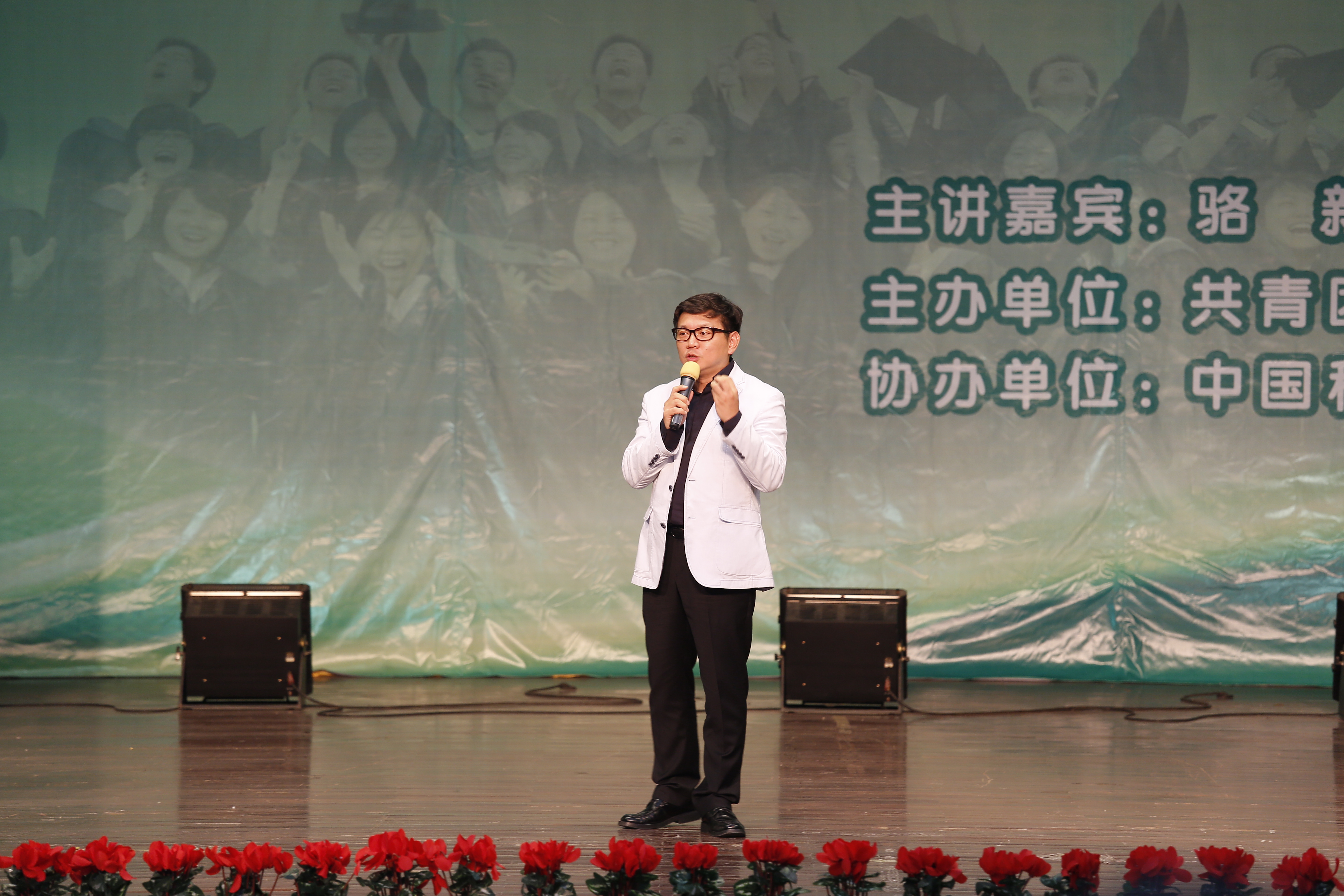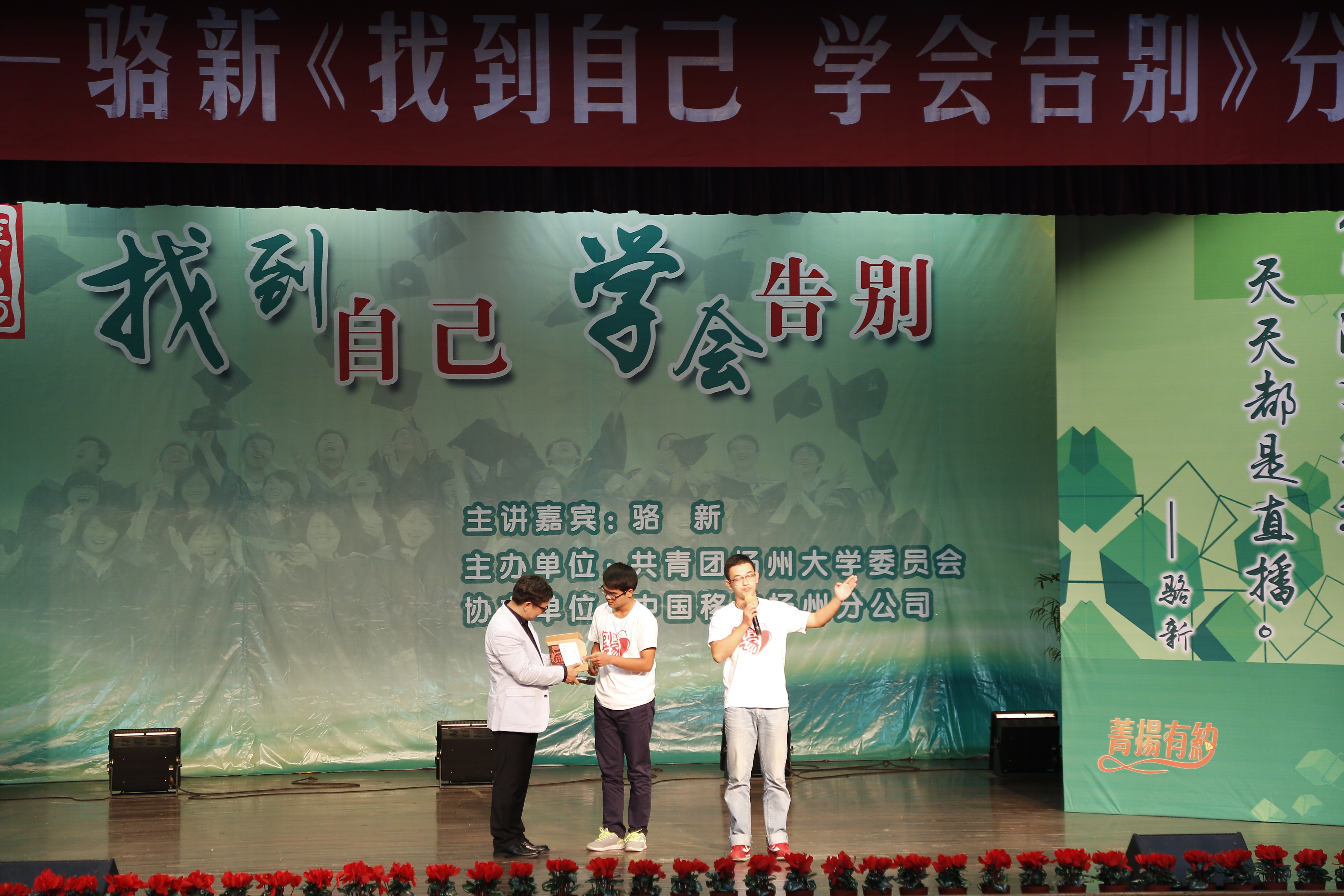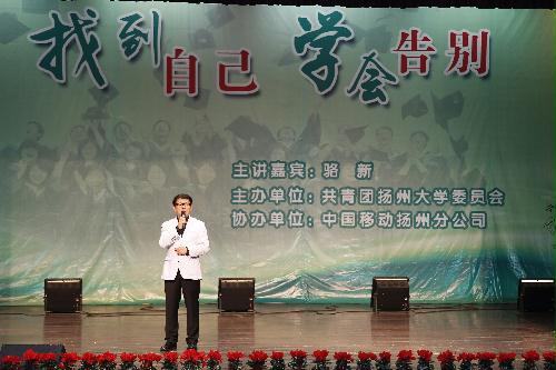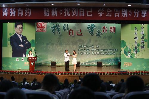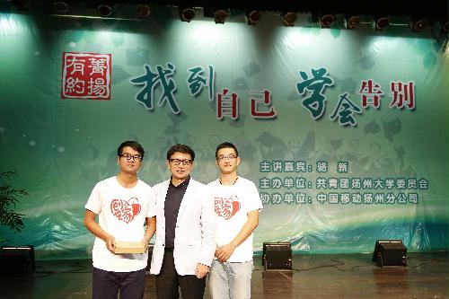 10月18日晚,东方卫视首席主播、创意总监骆新应邀作客我校“菁扬有约”青年公开课,在大学生活动中心三楼小剧场作了《找到自己 学会告别》的主题分享会,与广大师生分享他对于人性和生命的感悟。