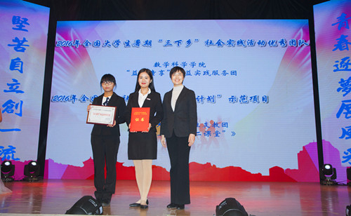 闭幕式上,学校为2016年度全国“见义勇为模范群体”、全国“创青春”创业计划大赛、全国社会实践优秀团队、全国青年社会组织“伙伴计划”项目等获奖集体和个人颁奖。